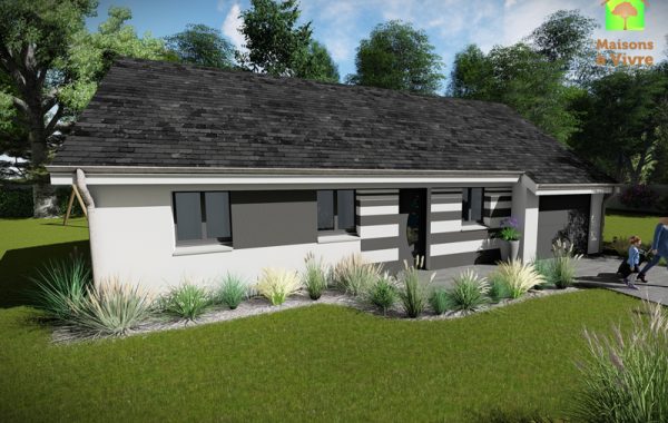 Maison EVOLUTION plain pied toit 2 pentes avec avancée en pointe