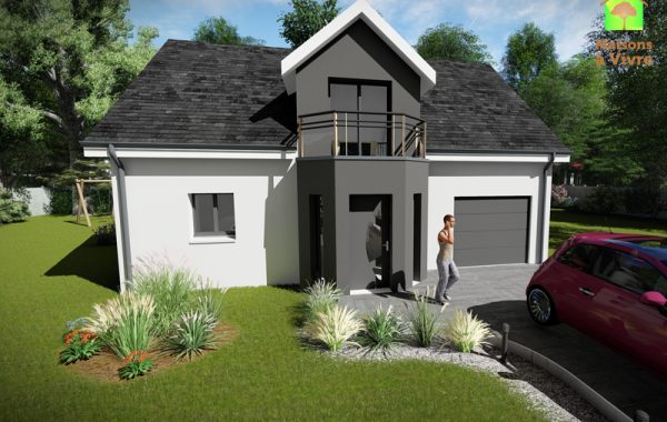 Maison Aulne plain pied toit 2 pentes avec balcon