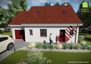 Modèle-de-maison-neuve-Charme-Actuel-toit-rouge-vue-extérieure-de-face-Maisons-à-Vivre